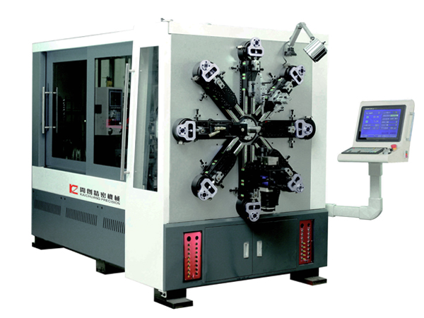 KCT-1245WZ十二軸無(wú)凸輪數(shù)控萬(wàn)能彈簧轉(zhuǎn)線(xiàn)成形機(jī),簡(jiǎn)稱(chēng)4.5mm無(wú)凸輪彈簧機(jī),加工線(xiàn)徑φ1.2-4.5mm,適合于生產(chǎn)各種精密壓簧、拉簧、扭簧、渦卷簧、塔形簧、扁線(xiàn)彈簧、異形簧及線(xiàn)成型等產(chǎn)品,廣泛應(yīng)用于家具、模具、機(jī)械、農(nóng)用機(jī)、摩托車(chē)、電動(dòng)車(chē)、汽車(chē)、鐵路和航空等領(lǐng)域。