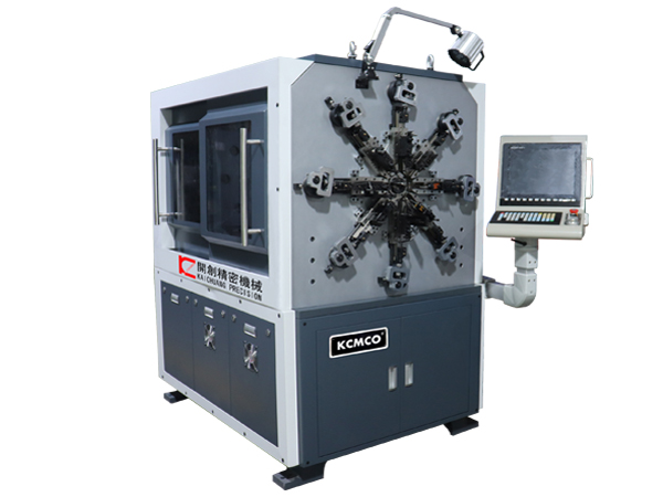 KCT-1220WZ十二軸無凸輪數控萬能彈簧轉線成形機,引用了臺灣電腦Windows7控制系統和日本進口安川伺服電機,采用了獨特的無凸輪和無搖臂設計,刀架由八組伺服馬達獨立控制,其中刀架八軸、送線1軸、轉芯1軸、轉線1軸和卷曲1軸,其統成由曲柄連桿成形系統、送線和轉線系統、繞線校直系統及轉芯系統等組成。與傳統凸輪彈簧機相比,不僅降低了人工作業的操作難度,調機速度提升達50%以上,還極大地提高了工作效率。